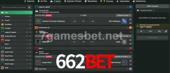 O 662bet oferece uma grande seleção de opções de apostas em e-sports com probabilidades competitivas